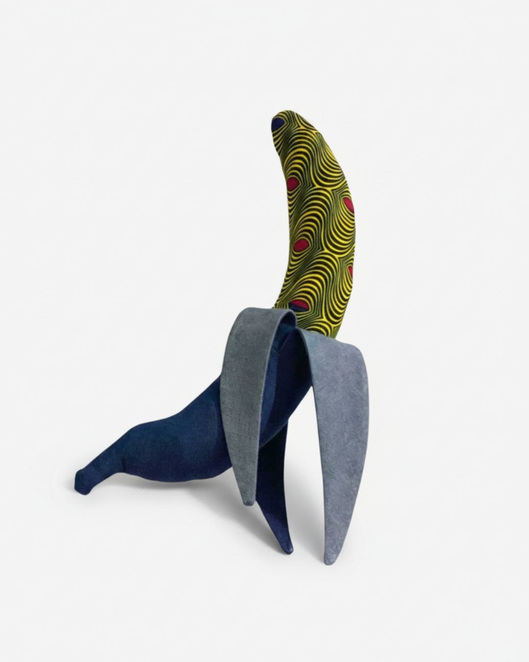 New You Banana is an upcycled soft toy made from recovered textiles. The outer layer is denim and the inside shows bright mixed colours of Kitenge. It is stitched by hand and comes with a small ring on the back so you can hang it on the wall if you like.